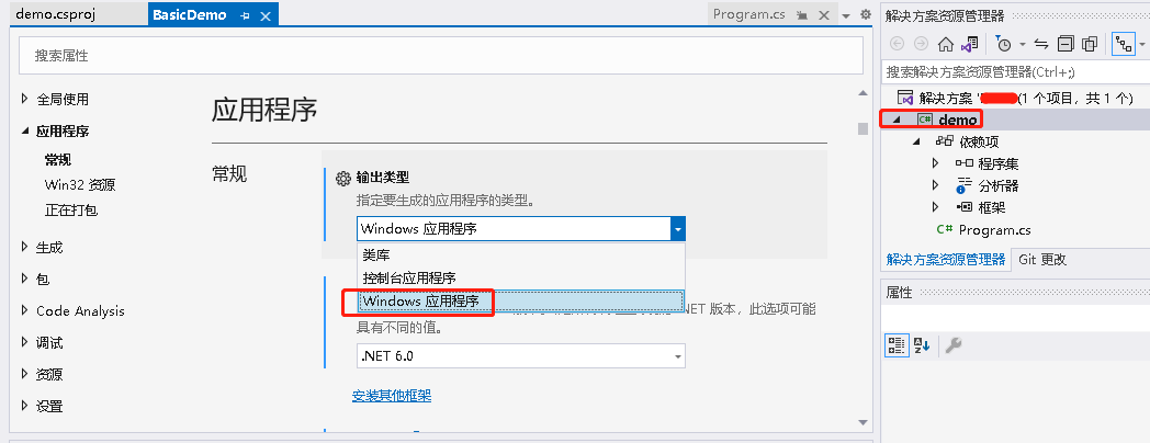 具体操作:在对应的项目上右击选择项目属性---》在应用程序模块选择对应的输出类型为“windows应用程序”,即可改变项目的输出类型,可参考下图: