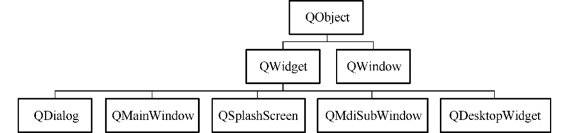 其他继承于 QWidget 的窗体类还有 QSplashScreen、QMdiSubWindow 和 QDesktopWidget