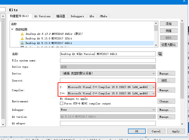 点击构建套件kit,选择x86_amd64,之后便不会出现类似问题了