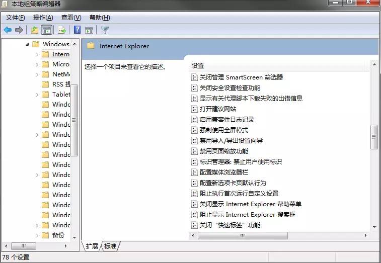 然后依次展开用户配置——管理模版——Windows组件——Internet Explorer,
