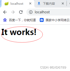 出现It works! 就说明已经安装成功。